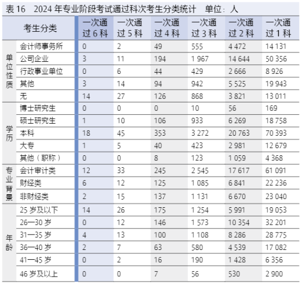 中注协在2025年第六期会刊中发布了2024年的考试分析报告,其中一次性通过专业阶段的全国只有20人!要知道2024年专业阶段可是有102.35万人考试,这概率真的是万中无一了!