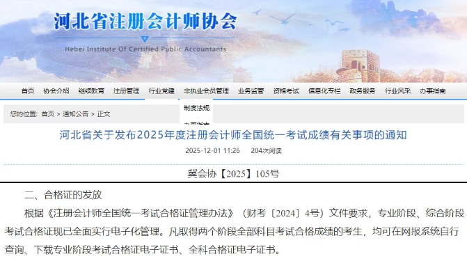 河北、河南、广西地区的注会考生注意啦!2025年CPA合格证即日起领取!