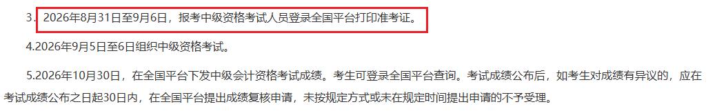 根据河北省财政厅发布的《关于2026年度全国会计专业技术资格考试(河北考区)有关事项的公告》可知:2026年河北中级会计准考证打印时间为8月31日-9月6日。准考证打印入口为全国会计人员统一服务管理平台(https://ausm.mof.gov.cn/index/)。