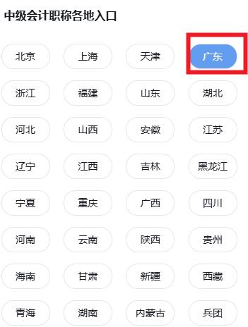 2.下拉在网站页面右侧中级会计职称各地入口选择相应省份