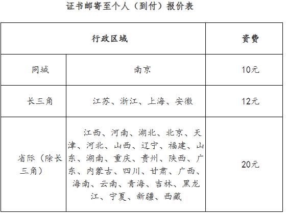 证书邮寄至个人(到付)报价表