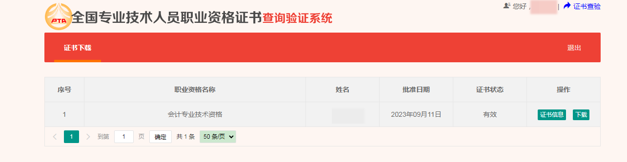4、点击【下载】,中级会计职称证书。