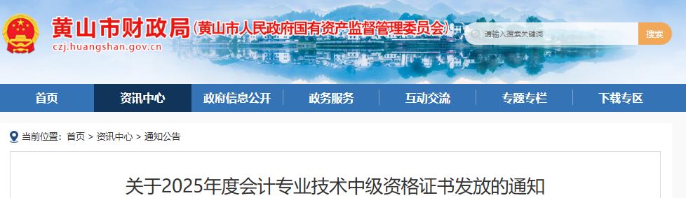 黄山市财政局发布了《关于2025年度会计专业技术中级资格证书发放的通知》明确了2025安徽黄山中级会计证书线上邮寄申请时间为2026年1月22日至3月10日,未在规定时间内办理线上邮寄发证的考生,可现场领取。