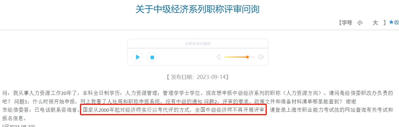 人力资源和社会保障部已推动职称制度与职业资格制度有效衔接。中级经济专业技术资格实行“以考代评”,通过全国统一考试取得证书后,即认定具备相应系列和层级的职称,无需再参加评审。