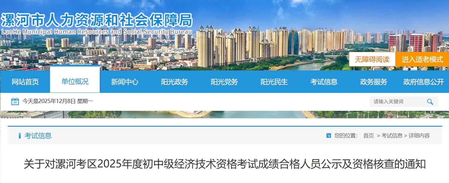 根据《专业技术人员职业资格考试考务工作规程》和《专业技术人员职业资格考试报名证明事项告知承诺制工作规程》规定和要求,现对漯河考区2025年度初中级经济技术资格考试成绩合格人员予以公示和考后资格核查。