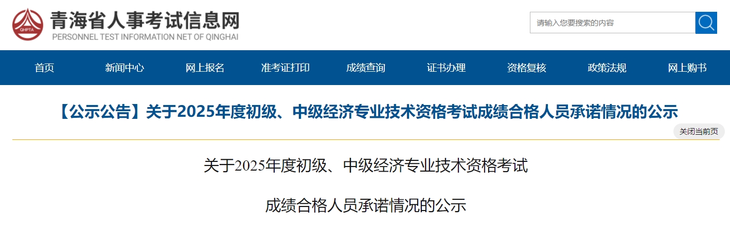 12月8日,青海省人事考试中心发布了《关于2025年度初级、中级经济专业技术资格考试成绩合格人员承诺情况的公示》,其中2025年青海中级经济师考试合格人员公示共计448人,公示期为12月8日至12月17日,详细内容请查看下文 。