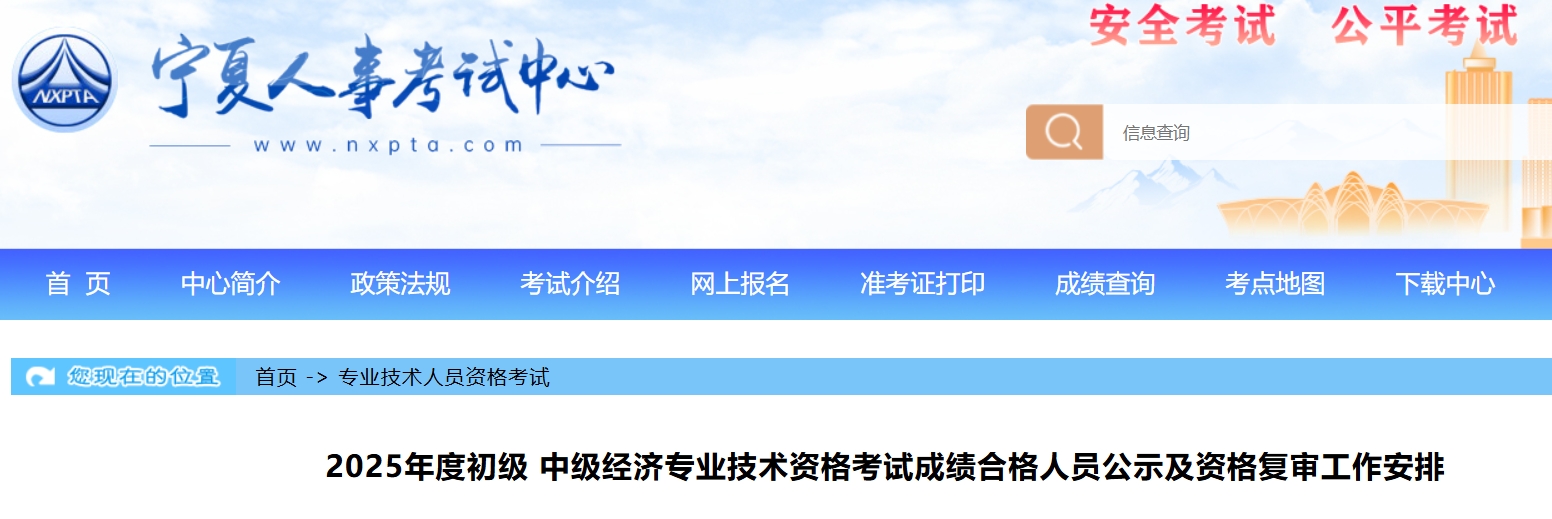 12月3日,宁夏人事考试中心发布了《2025年度初级 中级经济专业技术资格考试成绩合格人员公示及资格复审工作安排》,从中得知,2025年宁夏中级经济师考试合格人员公示时间为12月3日至12月12日,名单附后,另外2025年宁夏中级经济师资格后审须知发布,请查阅下文。