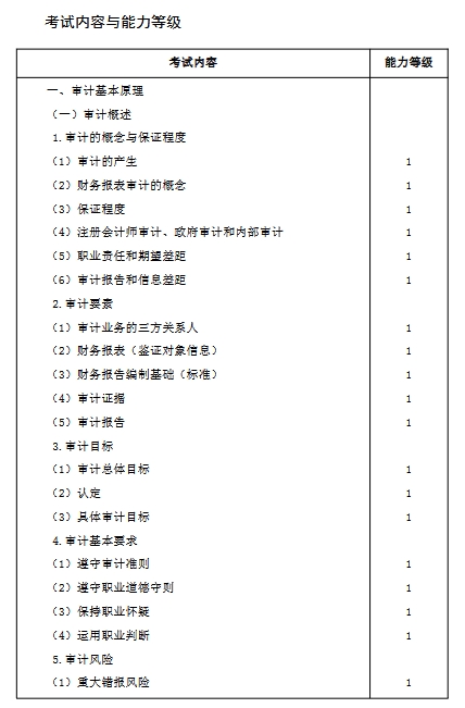 2026年注册会计师审计大纲预计在2月下旬发布,参考2025年考试大纲可知,考试内容有审计基本原理,企业内部控制审计等内容。
