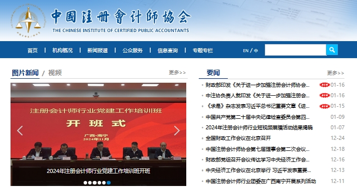 1、搜索“中国注册会计师协会”,进入到官网首页,网址为https://www.cicpa.org.cn/;