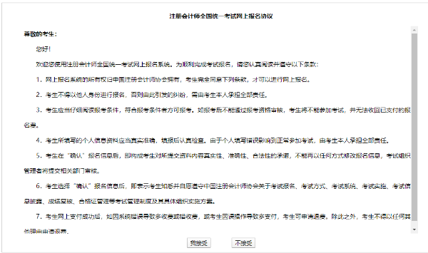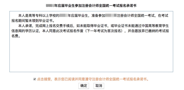 点击接受“2025年应届毕业生参加注册会计师全国统一考试报名承诺书”