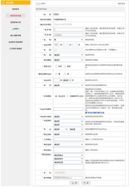 非应届毕业生、应届毕业生、以职称为报名条件的考生所需填写的信息略有区别,但均不需要填写毕业证书编号
