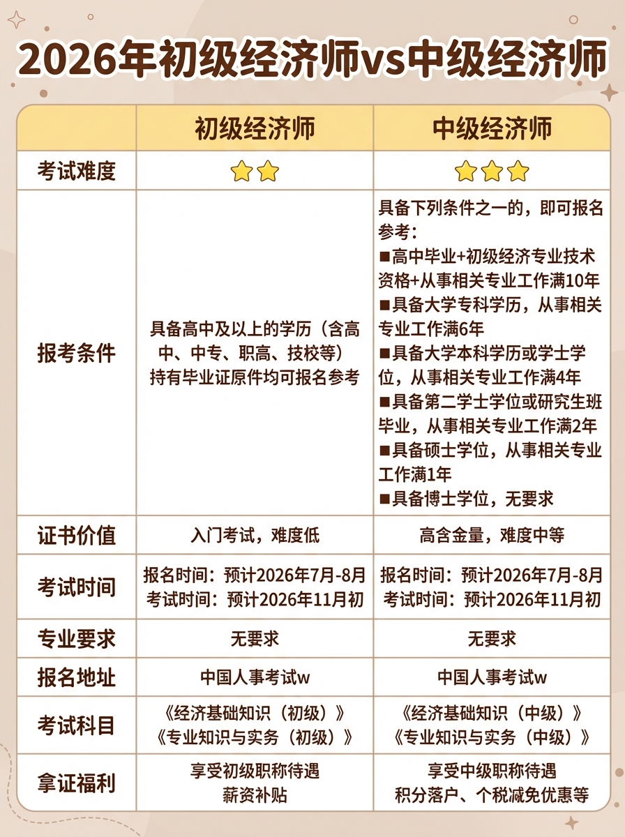 初级经济师与中级经济师的差别主要体现在证书定位、报考门槛、考试难度和职业价值等多个维度。本文将基于官方政策与最新信息,为您详细拆解两者区别,并提供中级经济师高效备考策略。