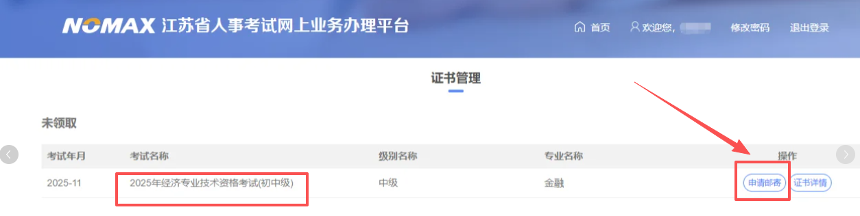 邮寄领取申请时间:2026年1月起,考生可随时登录江苏省人事考试网上业务办理平台申请证书邮寄。系统长期开放,但建议考生尽早申请,以免影响证书使用。