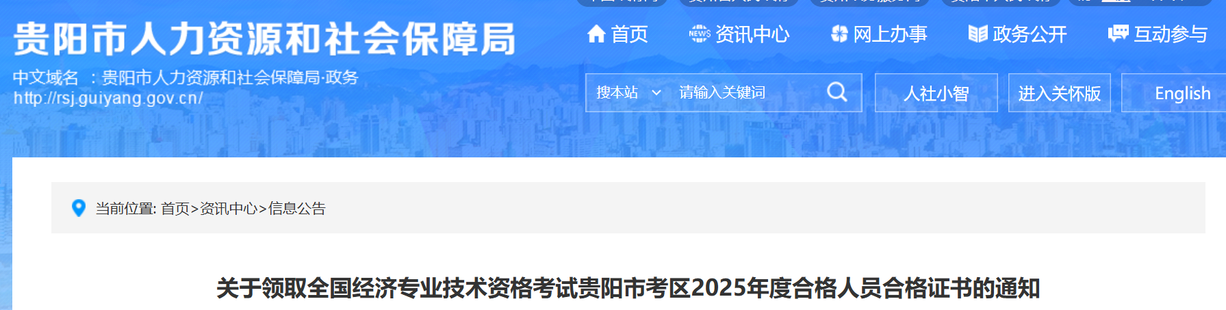 关于领取全国经济专业技术资格考试贵阳市考区2025年度合格人员合格证书的通知