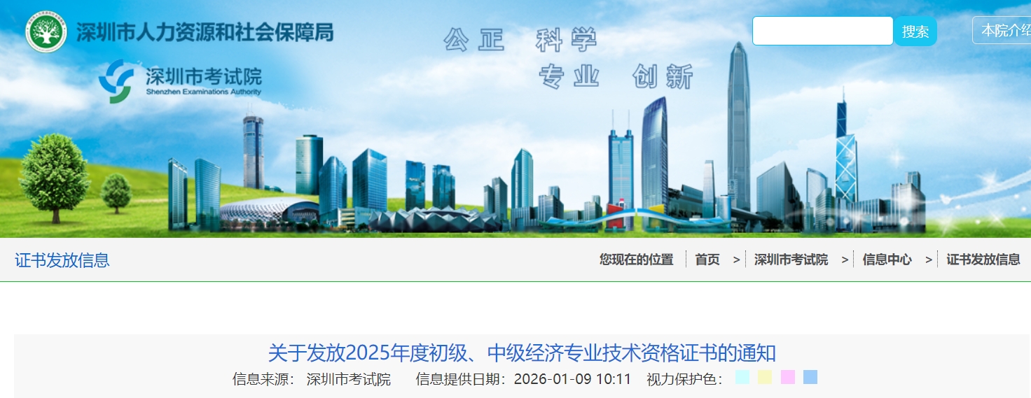 在深圳市报名参加2025年度初级、中级经济专业技术资格考试,全部科目成绩在有效期内合格的深圳考生(见附件)。