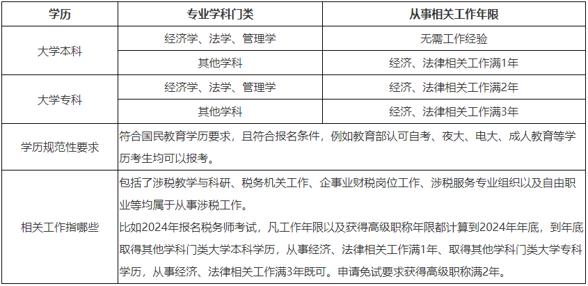 1. 取得经济学、法学、管理学学科门类大学本科及以上学历(学位)(含在校应届毕业生);或者取得其他学科门类大学本科学历,从事经济、法律相关工作满1年。