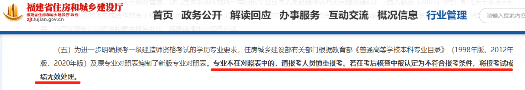 福建省考务文件中明确提到:为进一步明确报考一级建造师资格考试的学历专业要求,住房城乡建设部有关部门根据教育部《普通高等学校本科专业目录》(1998年版、2012年版、2020年版)及原专业对照表编制了新版专业对照表。专业不在对照表中的,请报考人员慎重报考。若在考后核查中被认定为不符合报考条件,将按考试成绩无效处理。