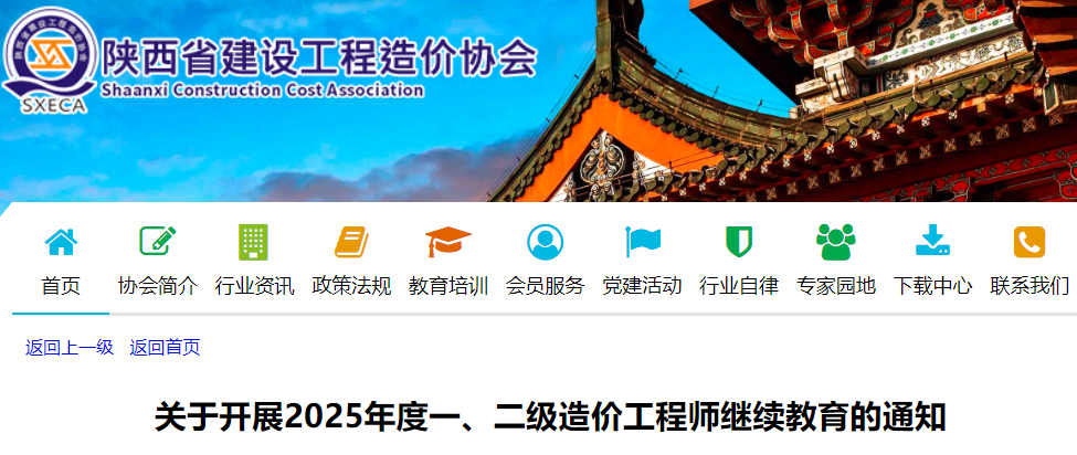 2025年2月27日,陕西省建设工程造价协会发布了《关于开展2025年度一、二级造价工程师继续教育的通知》,其中明确陕西一级造价师证书人员和未注册人员需进行继续教育,并对继续教育形式、内容、学习入口等作出具体说明。
