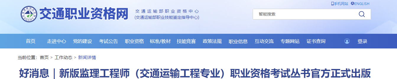 1月25日,交通职业资格网发布了“新版监理工程师(交通运输工程专业)职业资格考试丛书官方正式出版”的通知,该丛书紧扣考试大纲要求,具有较强的针对性和实用性,包括6册。