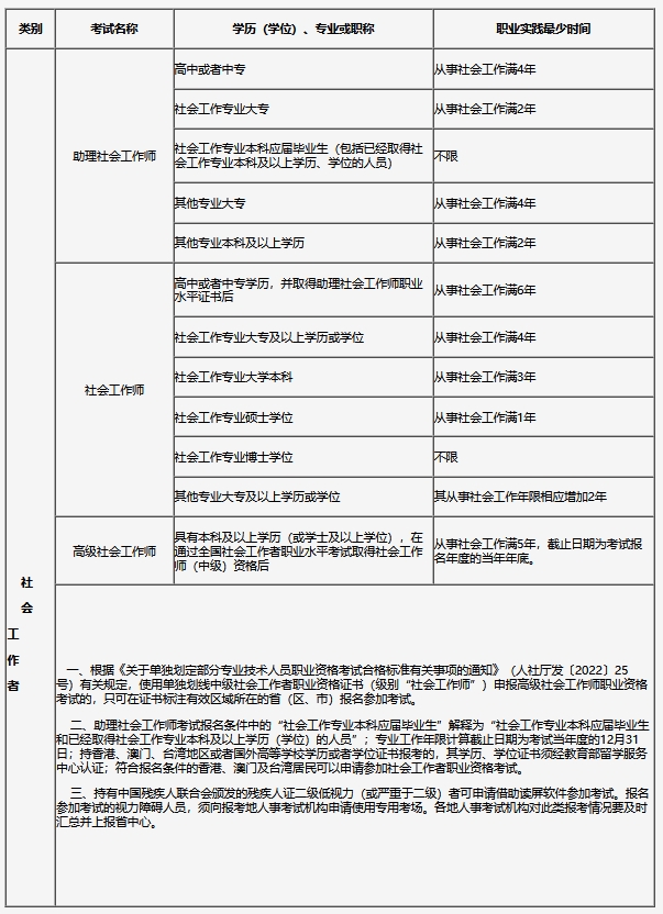 根据吉林省《关于做好2024年度社会工作者职业资格考试考务工作的通知》,2024吉林省社会工作者考试报名需要符合学历(学位)、专业或职称要求,并且规定了对应的职业实践最少时间,考生务必认真查看报名条件。