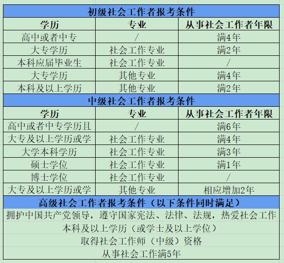 2024年社会工作者证书报名于4月开始,考生需提前了解报考条件,确定自己要报考的级别。要报考各级别社会工作者证书,需要满足学历、专业、社会工作从业年限三方面要求。