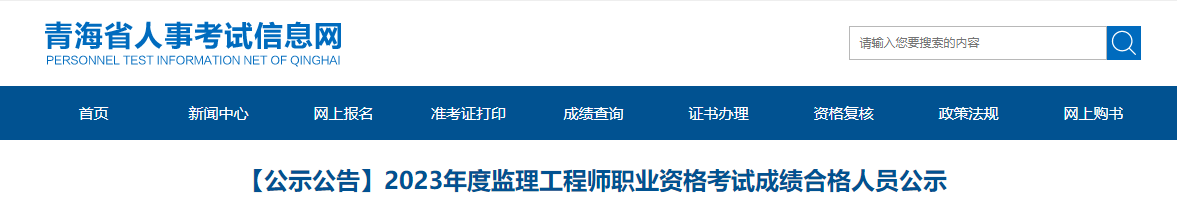 7月25日,青海省人事考试信息网发布了“2023年度监理工程师职业资格考试成绩合格人员公示”,公示期为2023年7月25日至2023年8月3日。
