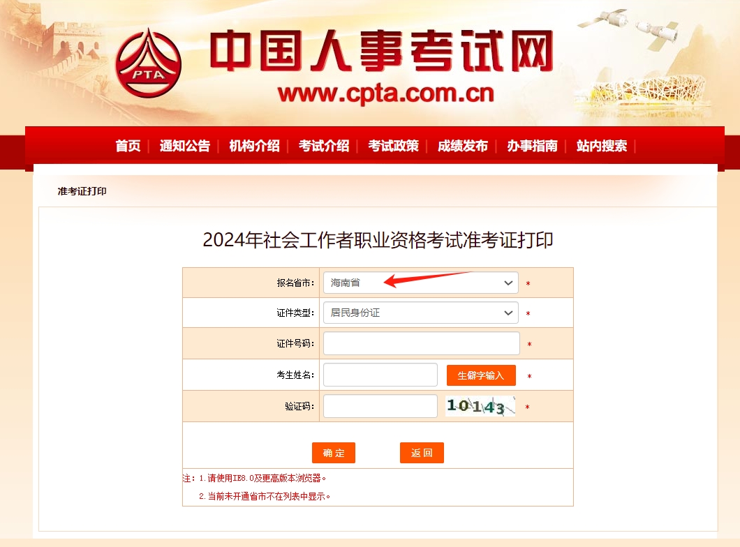 2024海南社会工作者准考证打印入口已开通,开通时间为6月7日-6月16日,根据中国人事考试网页面提示,6月7日0:00-6月16日15:00:00,海南考生可打印2024年社会工作者准考证,提醒考生按时打印准考证。
