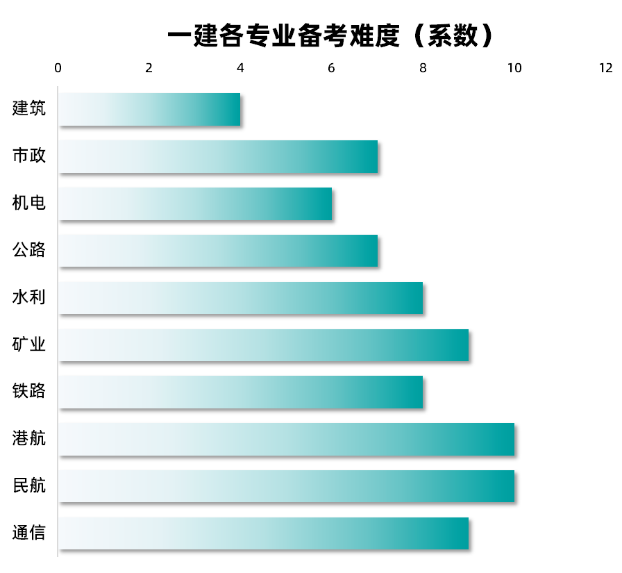 一级建造师各专业的考试通过率,可以反映出该专业考试的难度。以下是各专业通过率排行(从易到难) :