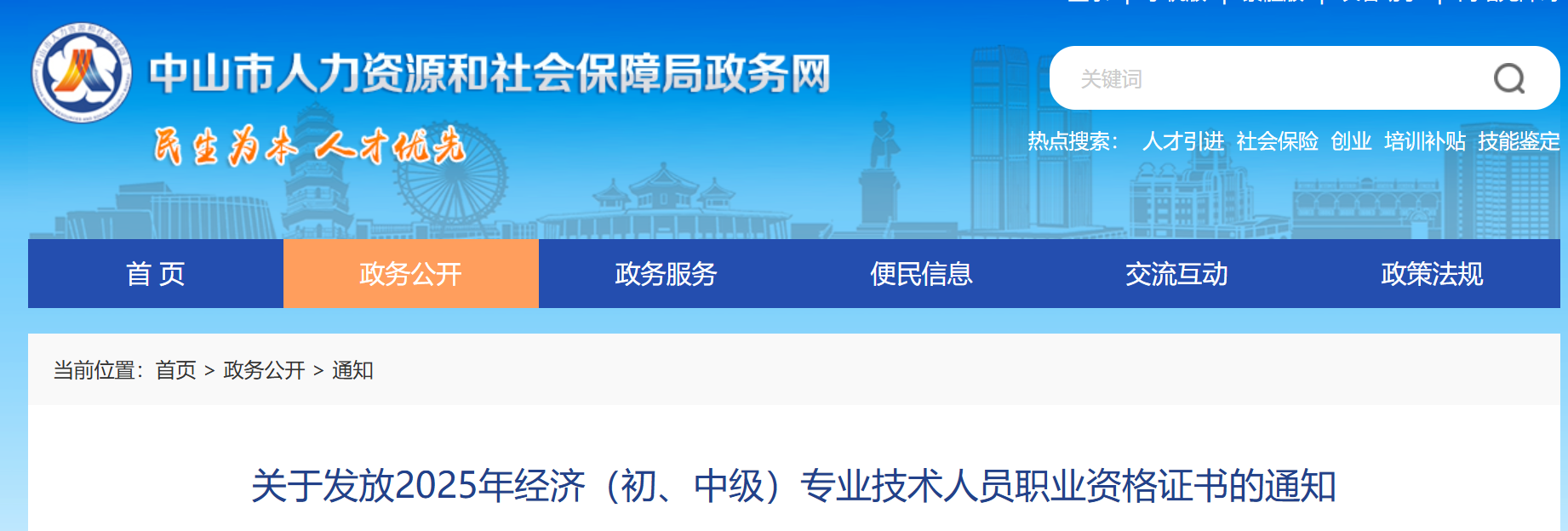 中山市人社局宣布,2025年经济(初级)职业资格证书已开始发放。考生可选择邮寄到付或现场领取,领取时间为周一至周五。