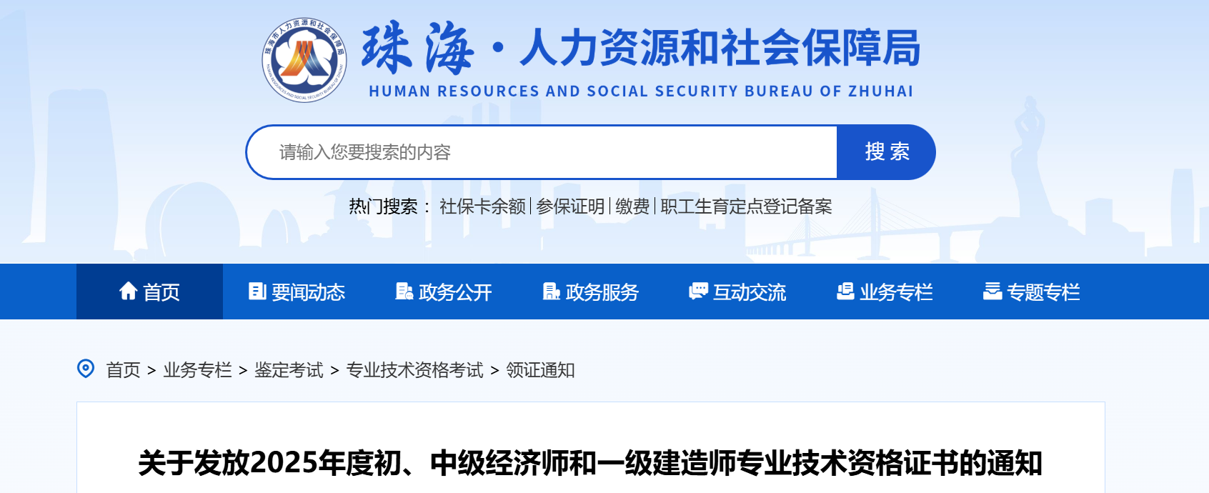 我院定于2026年1月19日开始发放2025年度初、中级经济师和一级建造师专业技术资格证书。考试成绩全科合格且资格复核通过的珠海考区考生,可按以下方式领取: