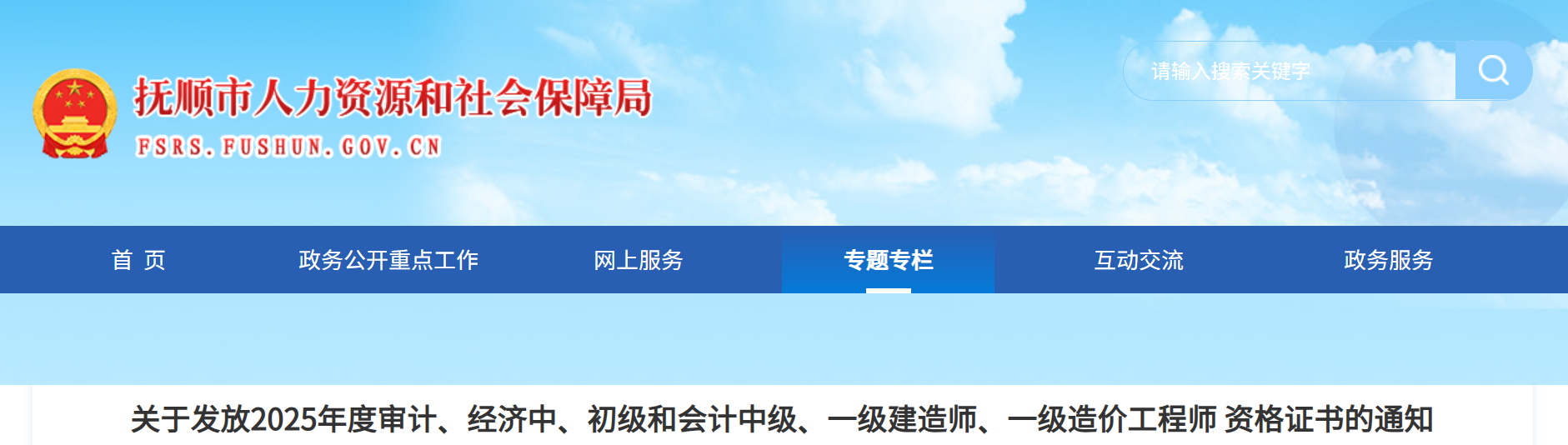 2025年度以下5项考试抚顺考区证书将发放: