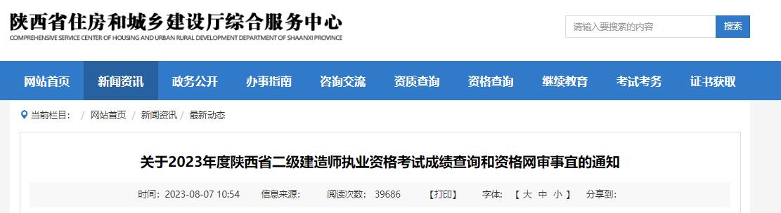关于2023年度陕西省二级建造师执业资格考试成绩查询和资格网审事宜的通知
