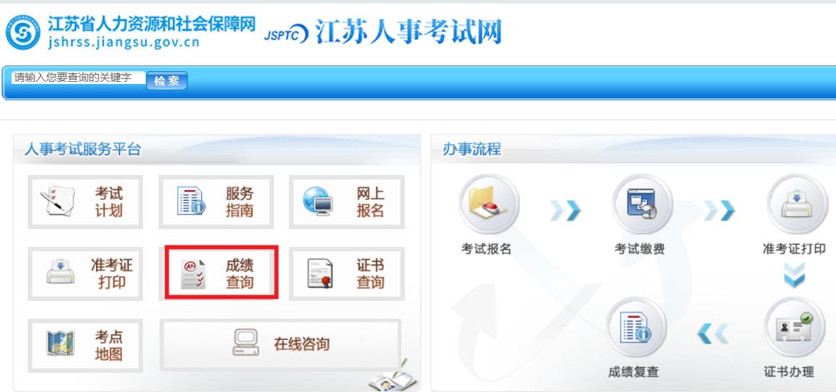 1.考生登录江苏人事考试网,选择成绩查询栏目入口进入。