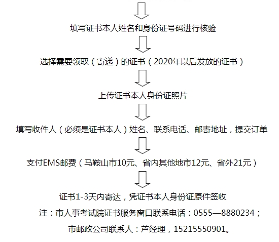 马鞍山市人事考试合格证书网上领取(EMS邮寄)服务办理流程