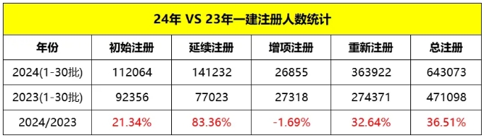 相比于去年同样批次的注册数量,今年的总注册增加了36.51%,其中增项注册减少1.69%,其他注册数量均增加,具体数据如下:
