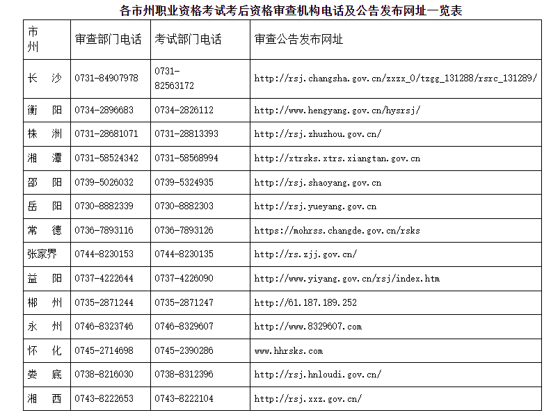 2.各市州职业资格考试考后资格审查机构电话及公告发布网址一览表