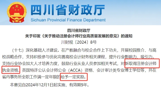 四川省财政厅:考过注会给予一定奖励