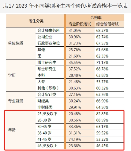 从2023年注册会计师合格率来看,专业阶段合格率46岁以上考生比25岁以下的还高!