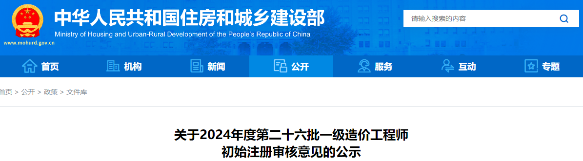 2024年11月14日,中华人民共和国住房和城乡建设部发布了《关于2024年度第二十六批一级造价工程师初始注册审核意见的公示》,其中明确共有1118人符合一级造价师初始注册条件,623人不符合注册条件,并对相关人员信息予以公示。