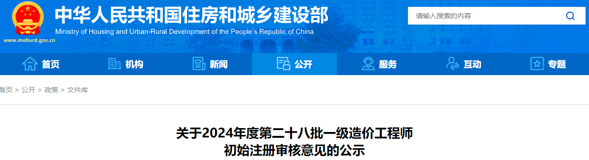 2024年第28批一级造价工程师初始注册审核意见公示通知原文如下: