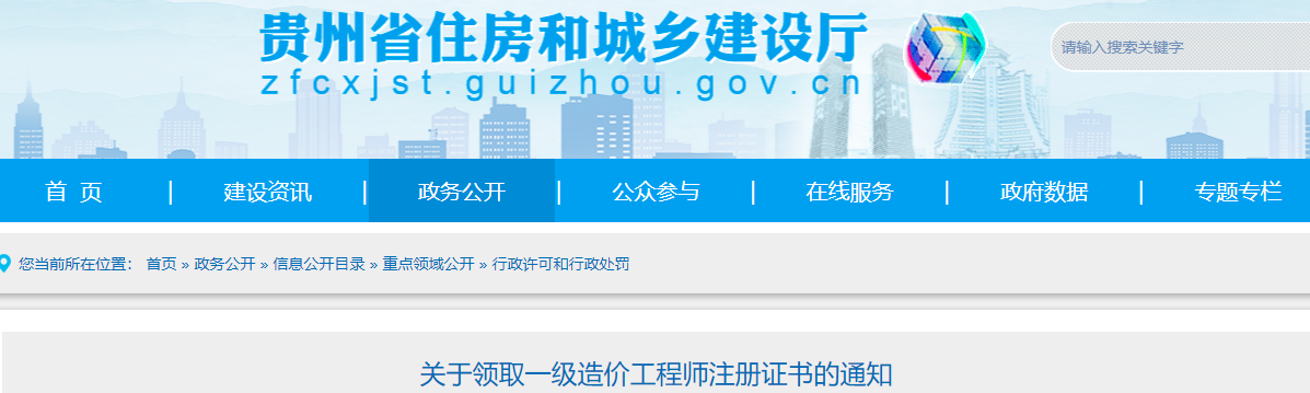 近日,贵州省住房和城乡建设厅发布了《关于领取一级造价工程师注册证书的通知》,其中明确贵州一级造价工程师证书初始注册、补办已办结,相关人员需尽快领证。