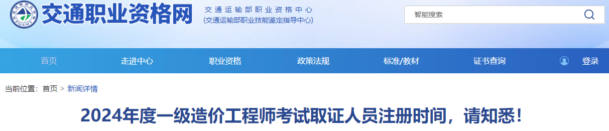 因2024年度交通运输工程一级造价工程师职业资格考试收尾工作还未结束,请取证人员勿自行将职业资格证书添加为公路工程造价人员(甲级)资格证书。待2025年3月完成考试相关工作后,取证人员可登录交通运输部行政许可网上办理平台(http://xkpt.mot.gov.cn)申请注册。