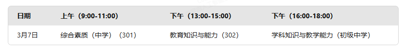 准考证打印:3月2日9:00-3月7日17:00(登录中小学教师资格考试网下载,建议打印2份并保存电子版)。