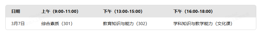 准考证打印:3月2日-7日(登录中小学教师资格考试网下载)。