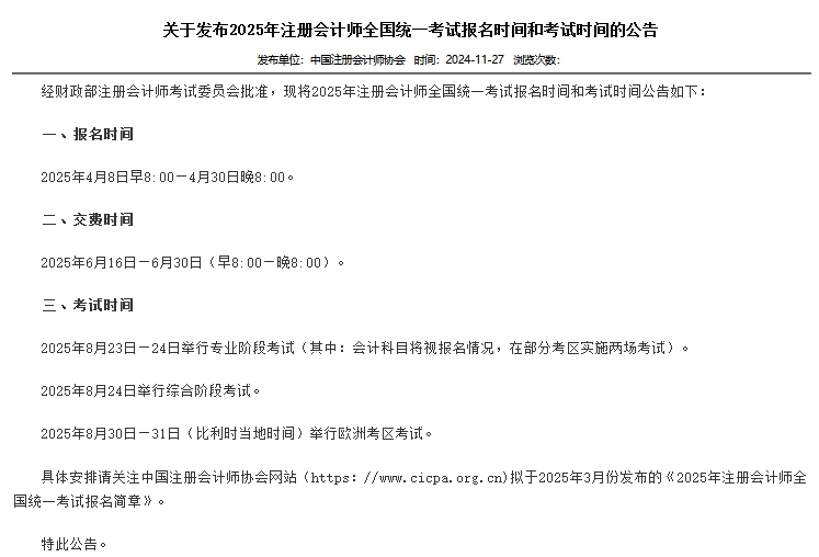 3、2025年cpa考试时间