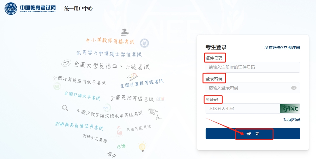(二)跳转至登录界面,填写证件号码,登录密码,验证码,点击“查询”。