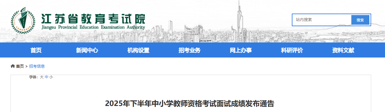 1月4日,江苏省教育考试院发布了“2025年下半年中小学教师资格考试面试成绩发布通告”,其中明确:在江苏省参加本次面试的考生,如对本人成绩有异议,可于1月8日9时至15日9时提交个人成绩复核申请。
