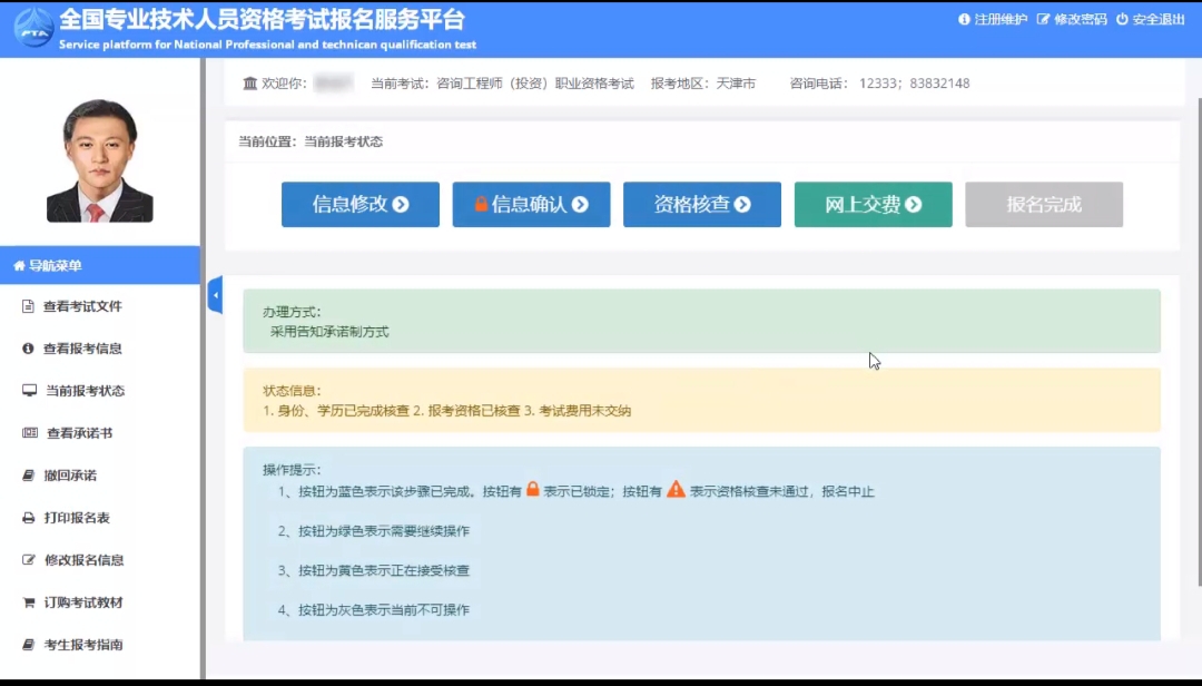 登录报名系统后,选择所报考的考试名称和地区,仔细阅读报考须知和承诺书后,按照系统提示填写个人信息和报考科目。请务必确保信息的准确性和完整性,带“*”的项目为必填项。