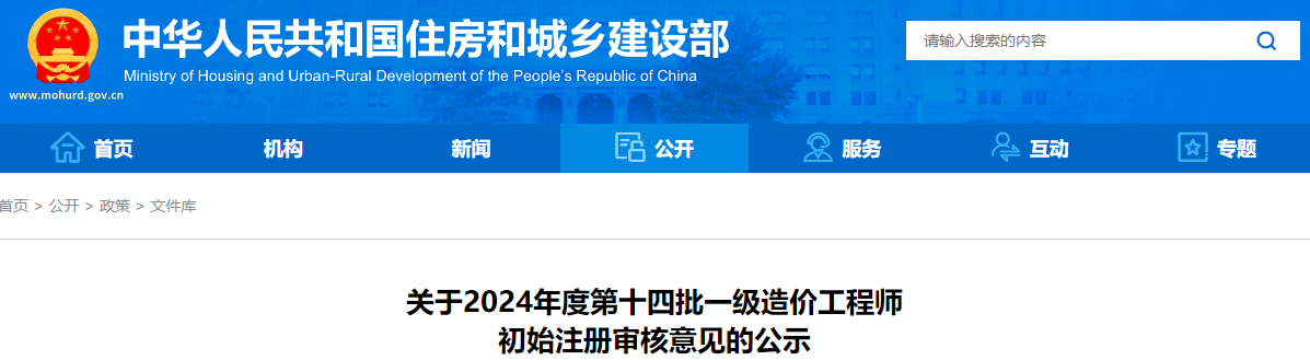 2024年6月24日,中华人民共和国住房和城乡建设部发布了《关于2024年度第十四批一级造价工程师初始注册审核意见的公示》,其中明确共有1566人符合一级造价师初始注册条件,376人不符合注册条件,并对相关人员信息予以公示。