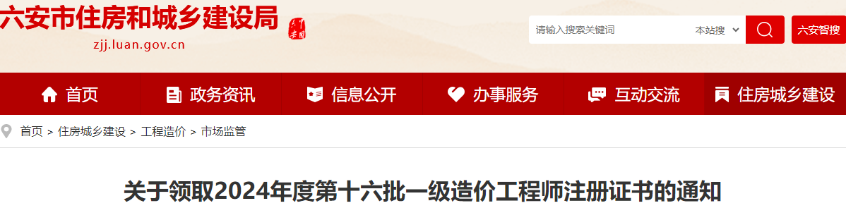 2024年7月15日,六安市住房和城乡建设局发布了《关于领取2024年度第十六批一级造价工程师注册证书的通知》,其中明确六安市一级造价师证书注册已办结,相关人员可进行现场领证。